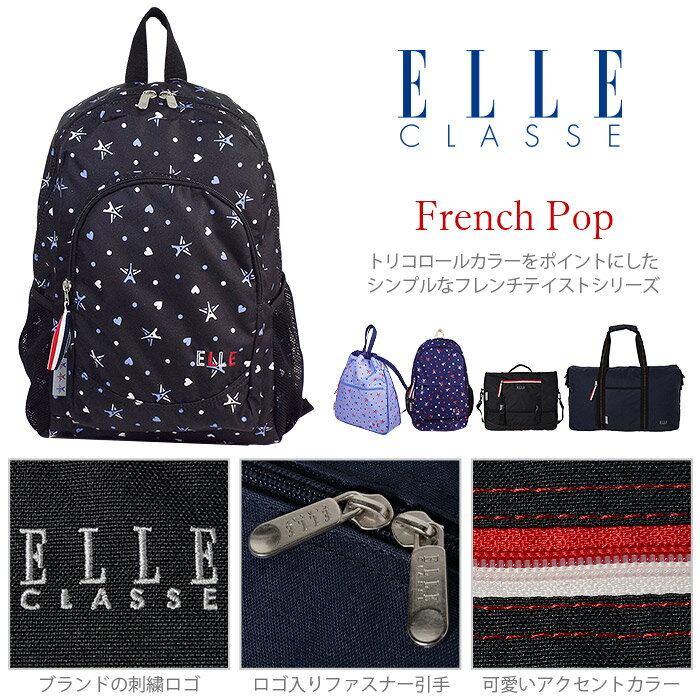 ELLE CLASSE リュック スクールバッグ キッズ 20L フレンチポップ エル EL414 上品なデザイン トリコロール かわいい リュックサック 女の子 遠足 小学生 中学 高校 通学