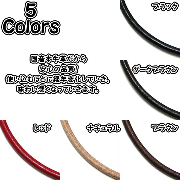 国産 牛革 3mm 丸紐 オリジナル ロングマルチコード 全長約50cm【RCP】 メール便可