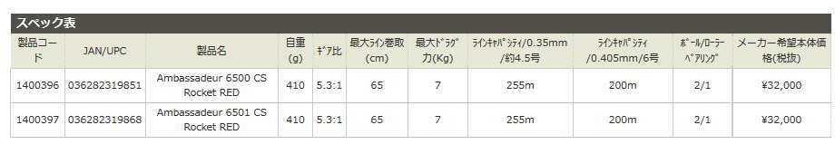 【送料無料】アブガルシアAmbassadeur 6500 CS Rocket Red【アンバサダー 6500】【ベイトリール】